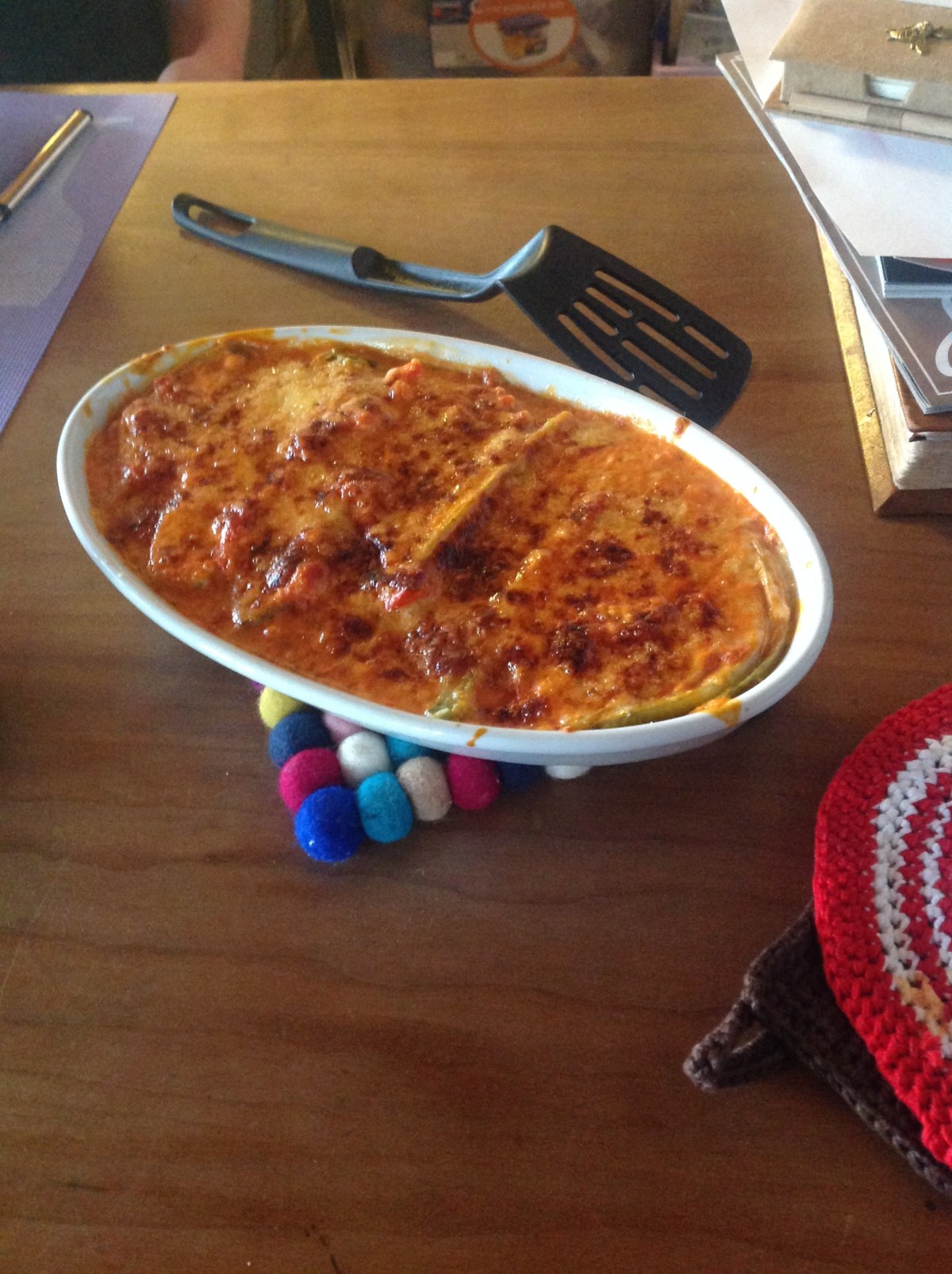 - Chicorée gut abtropfen und in eine geölte Auflaufform legen.