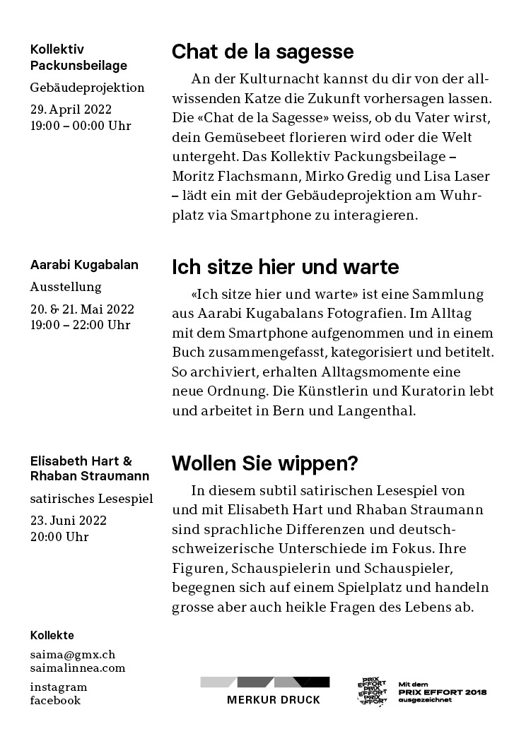 Kultur im Stöckli: Ausgabe 16