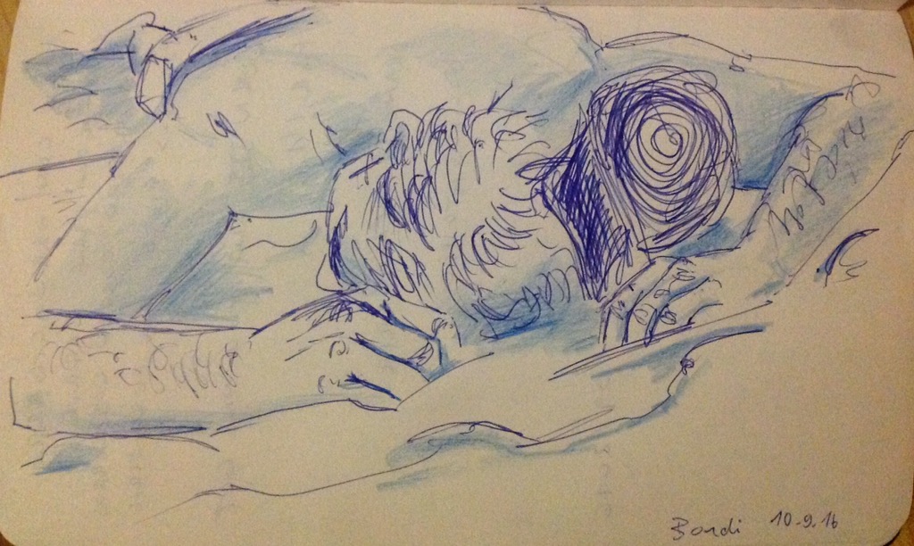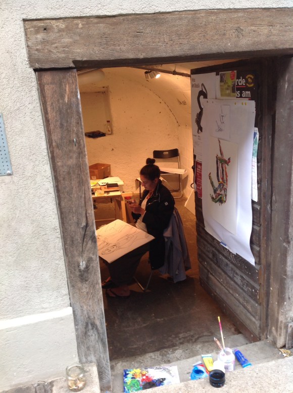 Vom 7. bis 11. August wurde der Keller von mir und Valerie Gurtner als Atelier genutzt. Wir zeichneten vor allem Akte und Portraits. Am Donnerstag war das Atelier offen für alle und es wurde gemeinsam unter „Trinkä u Zeichnä“ gestaltet. Am Freitag folgte die Vernissage mit musikalischer Begleitung des Duos Jona und Kathrin.