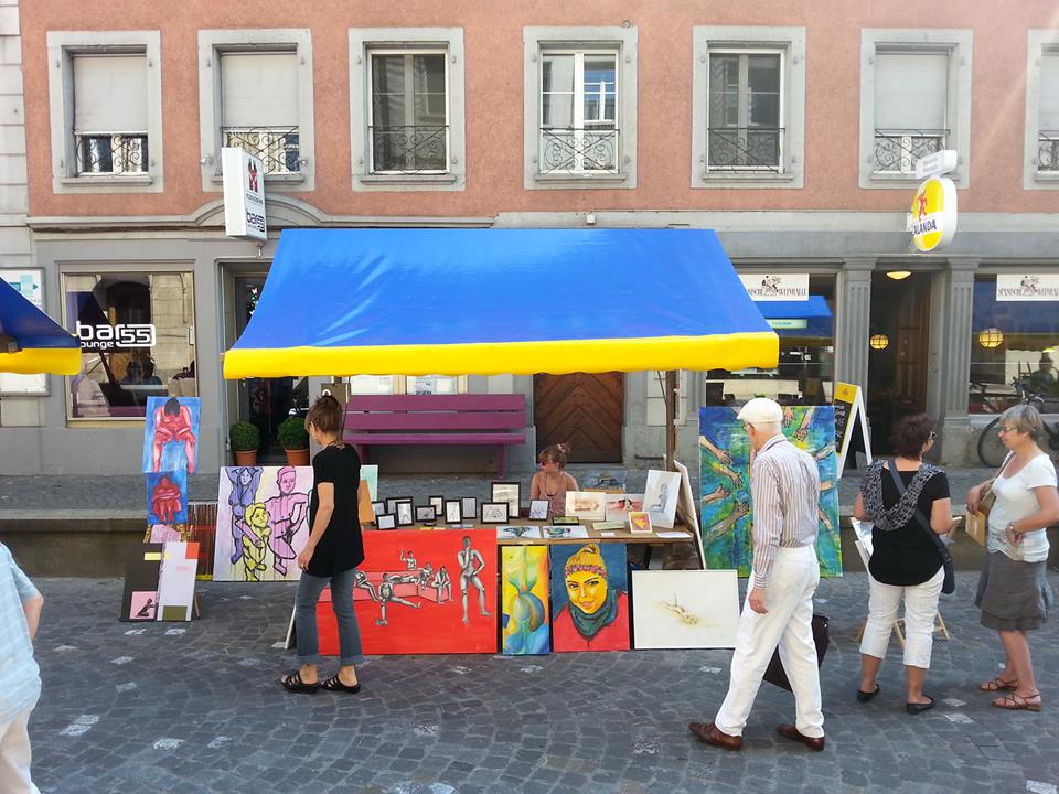 Am 6.6 fand zum siebten Mal in Langenthal der Künstlermärit statt. An einem Marktstand kann das eigene Kunstwerk verkauft und ausgestellt werden.