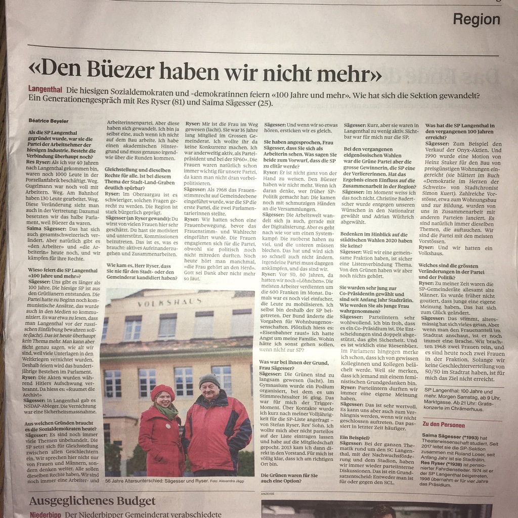 Die Kommunikationsverantwortliche der Stadt Langenthal führte zu Beginn meines Präsidiumjahrs ein Interview mit mir: https://www.langenthal.ch/aktuellesinformationen/2069596