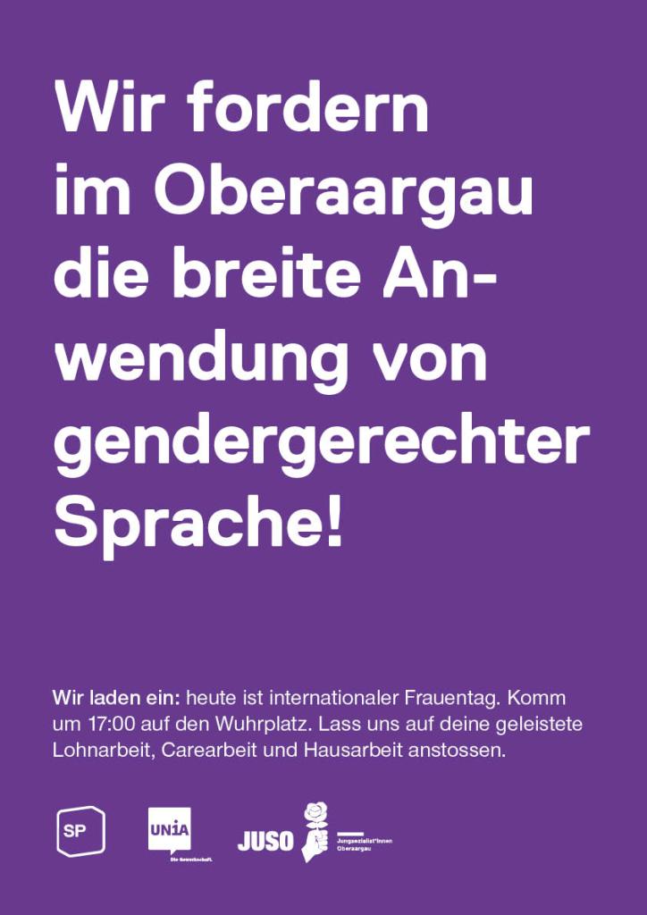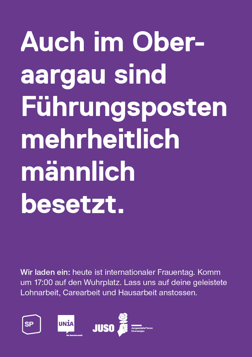 mir bruche e Einheitschrankekasse, meh öffentlechi und bezauhbari Chinderbetreuig, meh Finanze ir Kultur, transparänti und vereifachti Ibürgerige, weniger Fleischkonsum und e Individuaubestürig, um nur es paar Momänte znenne.