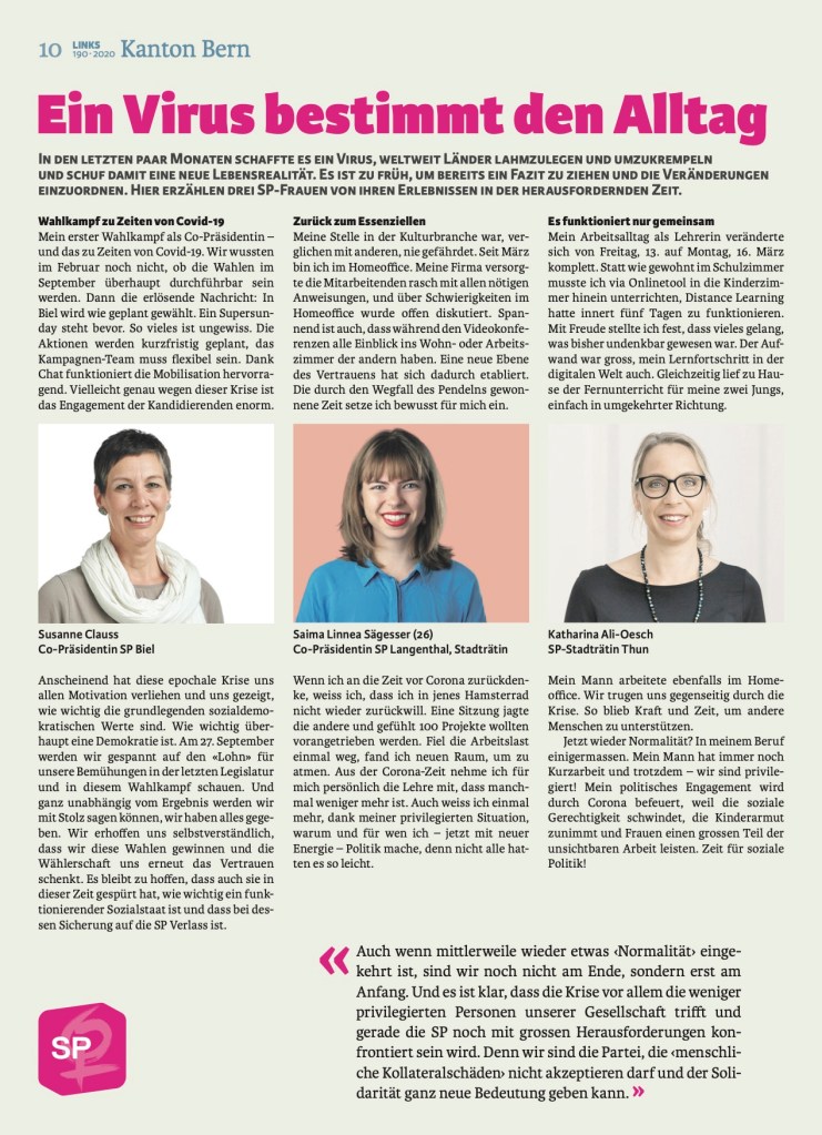 Des weiteren haben an der letzten Stadtratssitzung elf von zwölf Stadträtinnen zwei Vorstösse zum Thema Lohngleichheit eingereicht. «Und im Hinblick auf die Gemeindewahlen 2020 kann ich sagen, dass wir dank diesem Stamm unter den Frauen für die Kandidatur extrem gut mobilisieren konnten», freut sich SP-Co-Präsidentin Saima Sägesser.