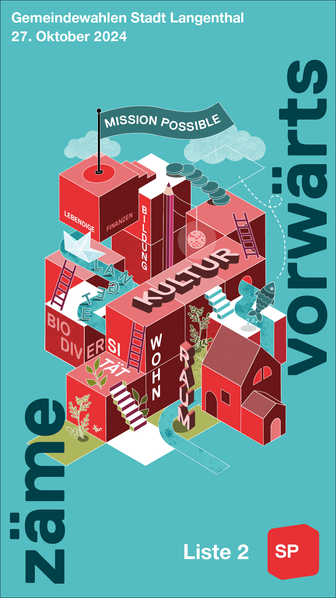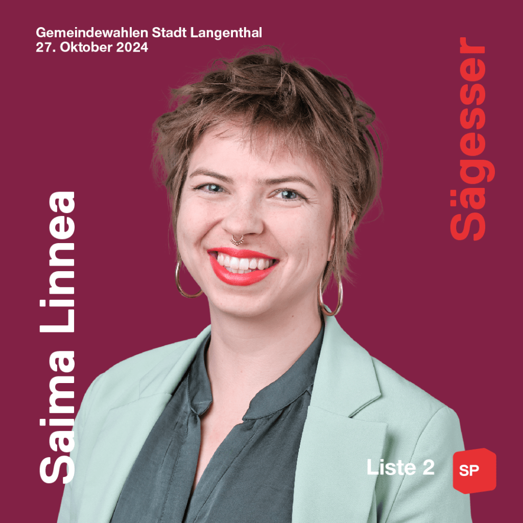 Am 27. Oktober 2024 werden in Langenthal ein neues Parlament und eine neue Regierung für die Legislaturperiode 2025-2028 gewählt: Die SP Langenthal tritt mit der Liste 2 an. 40 Kandidat*innen stehen für den Stadtrat zur Verfügung, 5 SP und 2 Grüne für den Gemeinderat.
