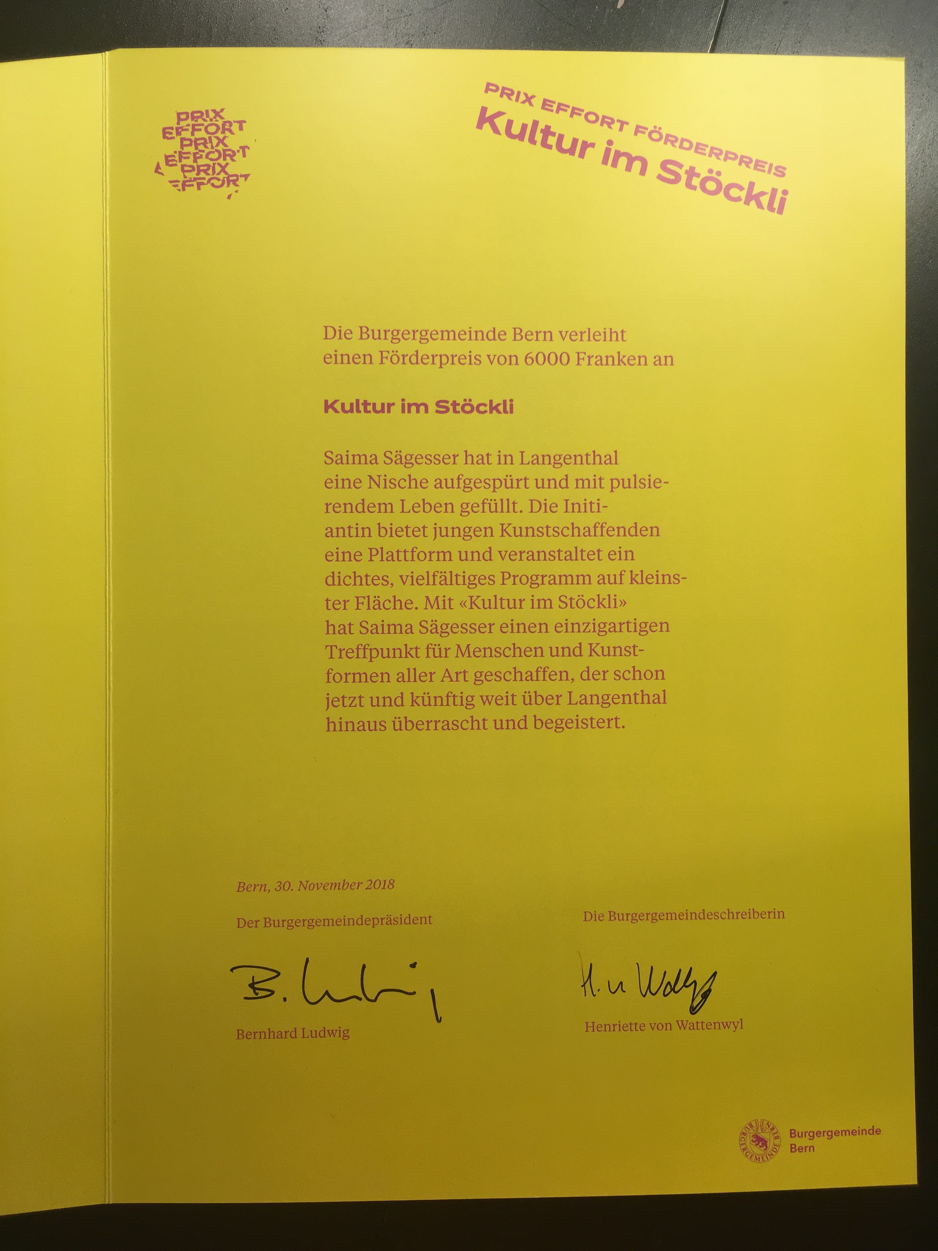 Neu heisst dieser Prixeffort – 28 versuchten ihr Glück, 5 gehörten zu den Gewinner*innen, so auch Saima Sägesser mit Kultur im Stöckli.