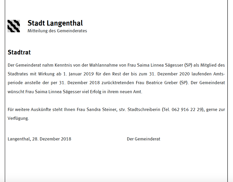 (Der Artikel im Oberaargauer vom 21.2.19 gibt ziemlich genau Teile meiner Ansprache wieder.)