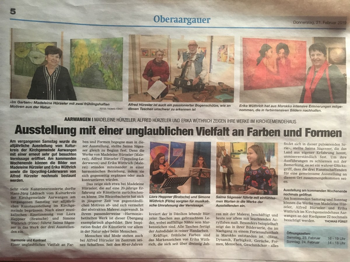 Am Samstag 16. Februar 2019 durfte ich in Aarwangen in eine Ausstellung mit drei Künstler*innen einführen.