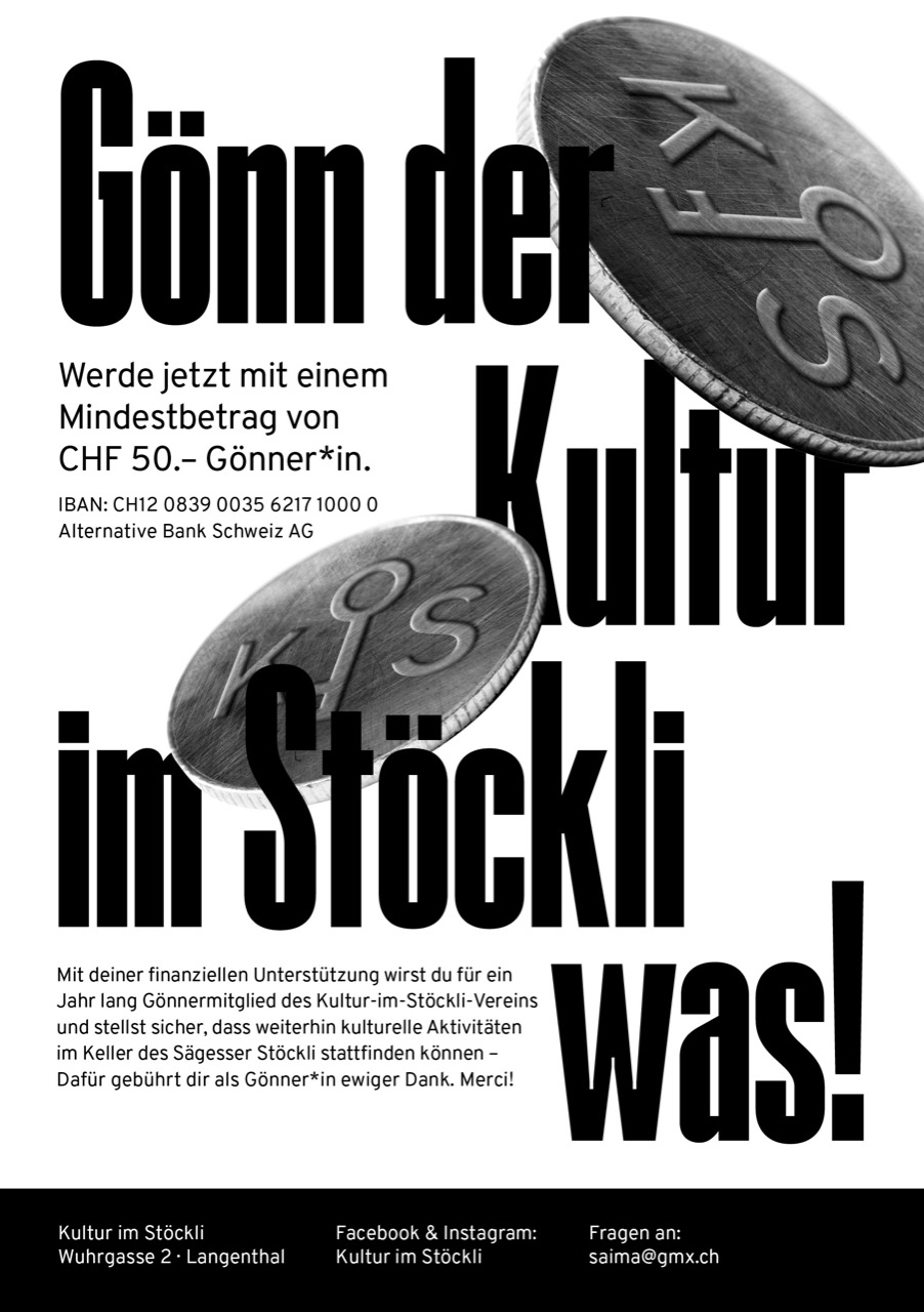 Jetzt den Kultur im Stöckli Newsletter abonnieren und über die bevorstehenden Veranstaltungen informiert werden!