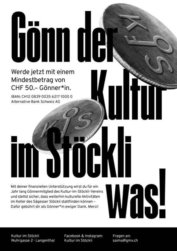 Gönn der Kultur im Stöckli was! Post author Von saimalinnea Post date 23. Februar 2019 ← Stadträtin ab 1.1.2019 → Vermittlung